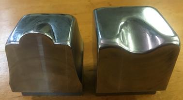Views of all sides of the dies. They are now ready for heat treatment to hardness 56 on the Rockwell C scale. After the heat treatment they will be cleaned and polished then put in the Yoder side of the Powell hammer.