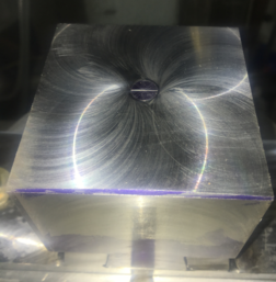 The top left picture shows the die after relieving the sharp corners. I then put together a spinner to hold the die centered while allowing it to rotate so that it can be smoothed, or blended, on the belt sander and polished. The rotation of the die, or spinning, allows you to maintain symmetry across the radius and the corners while smoothing the die. I used an aluminum block that I machined with 10 degree dovetails to hold the die on the shaft of the spinner to reduce weight. The S7 steel blocks are heavy and adding a steel holding fixture would add more weight so I used a lighter material and put end blocks on the fixture to clamp and secure the die rather than pinch screws in the side for added strength. The second photo shows all the parts of the spinner before assembly. The top right photo shows the die mounted in the holding fixture before I installed the end clamp block. The bottom photo is the die and the spinner as I used it on the belt sander and the right photo is the final product after polishing. Now ready for heat treatment.